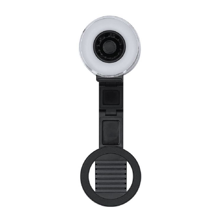 Anneau lumineux avec ventilateur en ABS résistant avec une finition mate. Inclut un support magnétique multiposition extensible pour smartphone. Ventilateur à 3 vitesses avec option de changement de vitesse. La lumière annulaire possède 16 LED avec une option pour 3 niveaux d’intensité lumineuse. Inclut des boutons marche/arrêt, contrôle de la lumière et de la vitesse. Batterie de 500mAh rechargeable par câble de charge de type C inclus, 5V. (couleur noir)