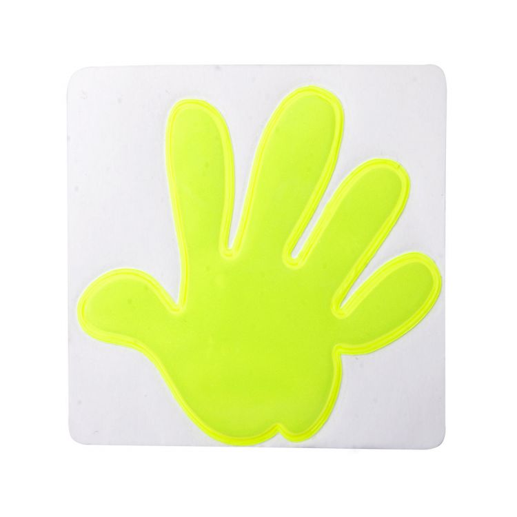 Autocollant réfléchissant en forme de main. Destiné à un usage promotionnel uniquement, le produit n'est pas considéré comme un équipement de protection individuelle