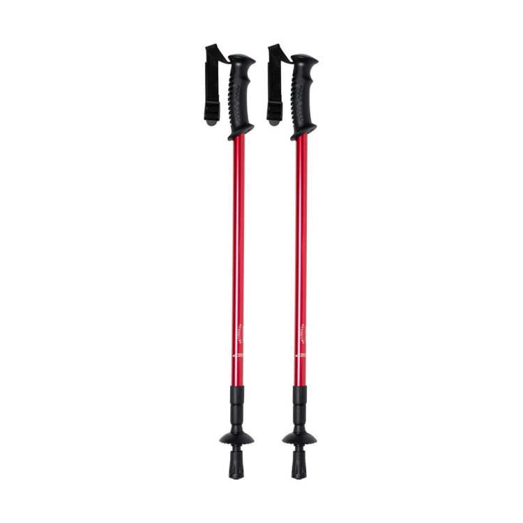 Set de 2 bâtons télescopiques marche nordique en aluminium, poignée ergonomique, dragonne, système antichoc et rondelles hiver. Livré dans un sac.