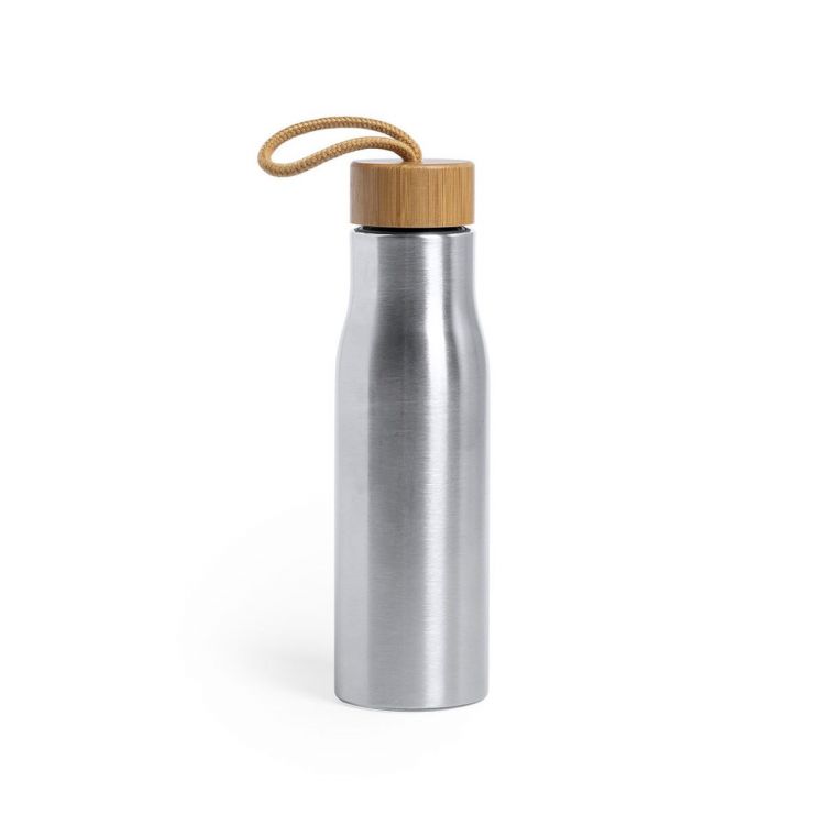 Gourde de ligne naturelle de 550 ml. Corps en acier inoxydable et bouchon en bambou avec bande transporteuse. Sans BPA et présenté dans une jolie boîte de design écologique. (couleur argent)
