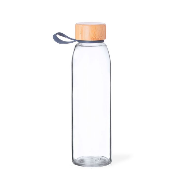 Bidon en verre de 500 ml. Bouchon à vis en bambou avec poignée en silicone pratique. Présenté dans une boîte design kraft. (couleur naturel)
