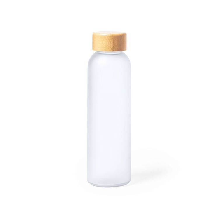Bouteille de la ligne nature d'une capacité de 500 ml, spécialement conçue pour le marquage par sublimation. Corps en verre, avec bouchon à vis en bambou et sans BPA. Présenté dans une boîte individuelle éco-conçue. (couleur naturel)