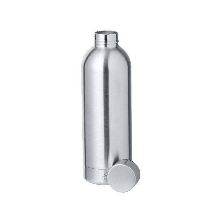 Bidon thermique double couche en acier inox recyclé de 500 ml de capacité. Fermeture à vis pour une étanchéité optimale et avec un acier inoxydable recyclé Logo. Présenté dans une belle boîte de design kraft.L'acier est l'un des matériaux les plus demandés et peut être trouvé presque partout, des produits d'usage quotidien aux grandes constructions. Avec d'innombrables propriétés, parmi lesquelles la durabilité et son haut degré de réutilisation, en faisant une alternative très appréciée en solutions de durabilité. Dûment traité, il permet d'obtenir de nouvelles ressources d'utilisation infinie. (couleur argent)