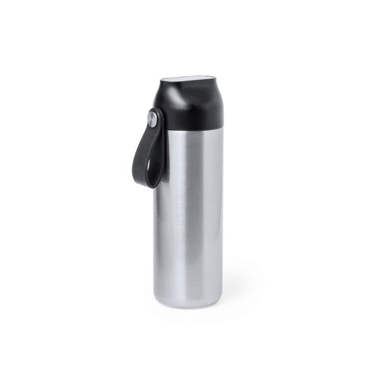 Gourde isotherme à double paroi en acier inoxydable d'une contenance de 630 ml, avec jauge de température tactile sur le bouchon et poignée intégrée. Avec un bouchon de sécurité sans BPA et présenté dans une jolie boîte individuelle au design Kraft et dans un sac recyclé. Alimenté par batterie (bouton inclus), avec manuel d'instructions disponible en espagnol et en anglais. (couleur argent)