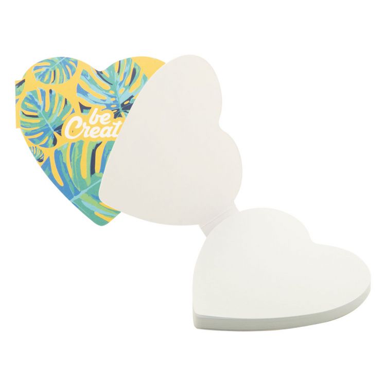 Bloc-notes adhésif en forme de cœur recouvert de papier sur mesure. Comprend 50 feuilles de notes autocollantes en papier recyclé. Le prix comprend la couverture extérieure imprimée en quadri. Quantité minimale : 100 pièces