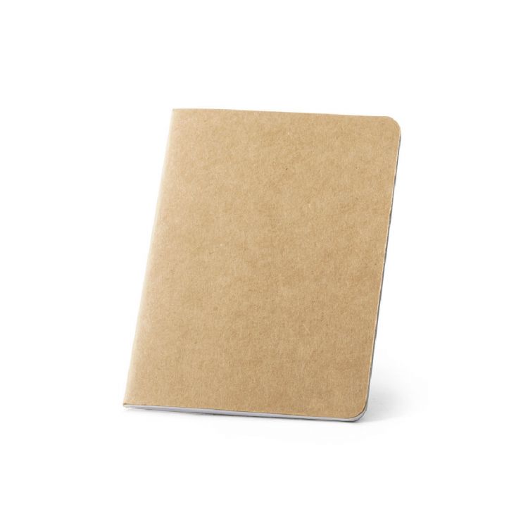 Bloc-notes B7 avec 60 pages non lignées fabriquées en papier 100% recyclé (70 g/m²) et couverture fabriquées en papier 100% recyclé. Produit en couleur naturel