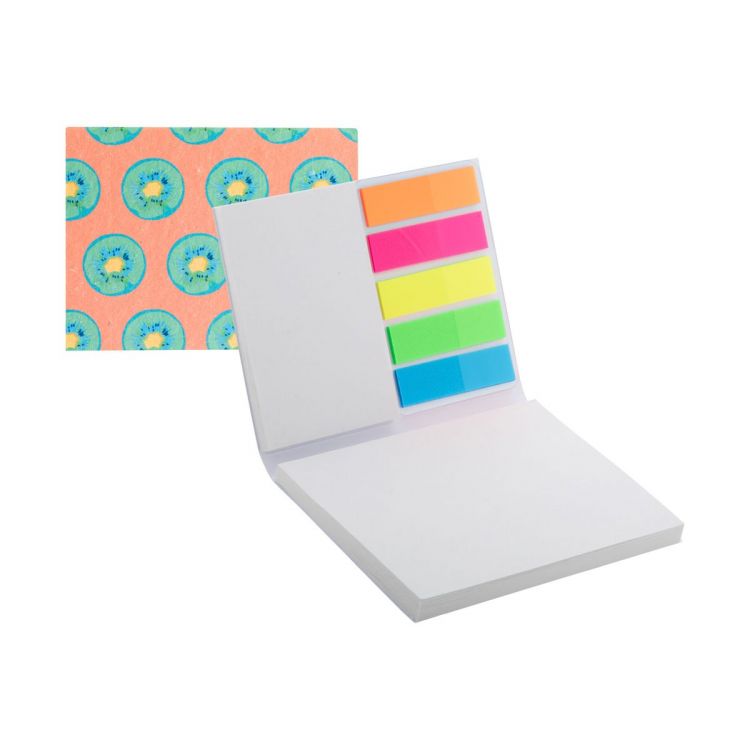 Bloc-notes recouvert de papier ensemencé sur mesure. Comprend des notes autocollantes en papier recyclé en 2 tailles (50 feuilles de 100×75 mm, 25 feuilles de 50×75 mm) et 100 marque-pages en film plastique de 5 couleurs assorties (12×44 mm). Le prix comprend l'impression en quadri sur la couverture. Quantité minimale : 100 pièces. Avec un assortiment de graines de fleurs sauvages