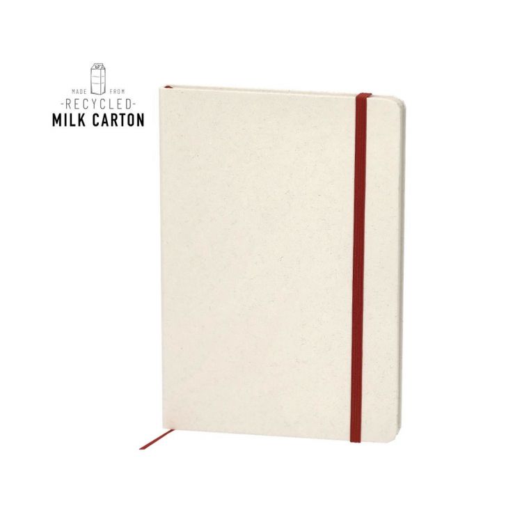 Bloc-notes avec couvertures rigides fabriquées avec des cartons de lait recyclés. Inclut 80 feuilles de couleur naturelle à rayures, avec une bande élastique et un marque-page de couleur. Inclut un symbole Recycled Milk Carton au dos et sur les pages intérieures.Les cartons de lait sont majoritairement composés de carton et d'aluminium. Lors de leur processus de recyclage, les différents matériaux de l'emballage sont séparés pour leur réutilisation, contribuant ainsi à emprunter le chemin infini de l'économie circulaire. Ce matériau est caractérisé par son haut degré de recyclabilité, ainsi que par sa légèreté et sa résistance.