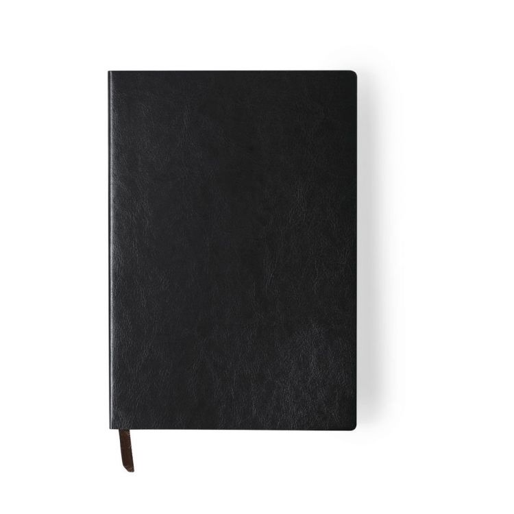 Bloc notes, couverture souple en similicuir. 100 feuilles lignées et marque page en similicuir egalement. Disponible en plusieurs coloris.