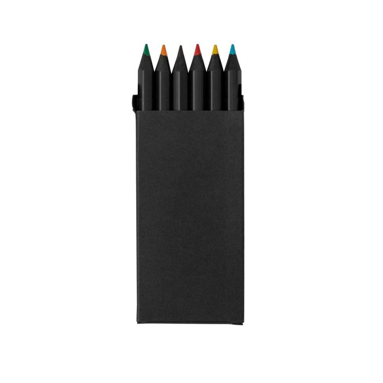 Set de 6 crayons en bois de couleur noire, avec corps hexagonal et mines en différentes couleurs. Présentés dans un étui noir en carton recyclé noir avec fermeture à rabat. (couleur noir)