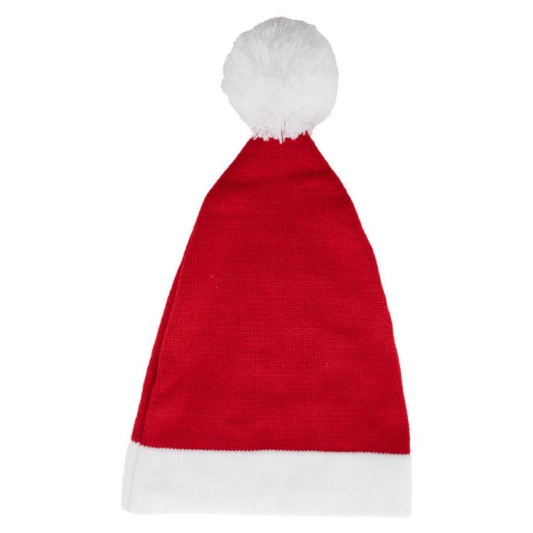 Bonnet de Noël tricoté en acrylique avec rebord et pompon en blanc, de couleur rouge