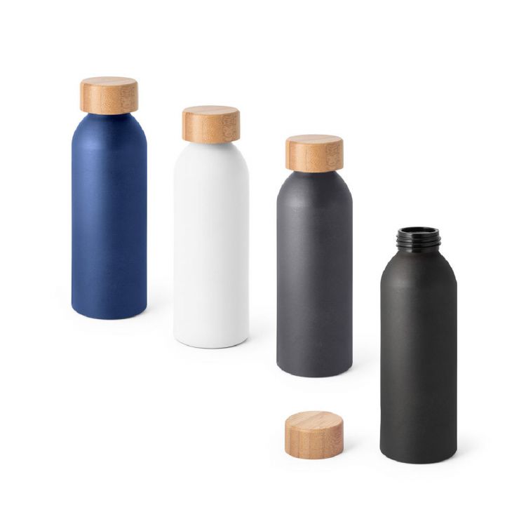 Bouteille en aluminium avec bouchon en bambou et finition mate pailletée. Capacité jusqu'à 550 mL. Le produit étant fabriqué à partir de matériaux naturels, la couleur du produit ainsi que le résultat de l'impression peuvent varier d'un produit à l'autre