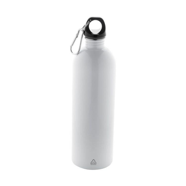 Gourde en acier inoxydable recyclé avec mousqueton en aluminium, 750 ml.