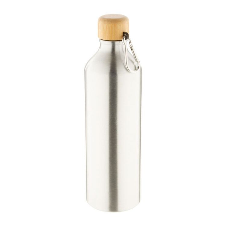 Bouteille en aluminium avec couvercle en bambou et mousqueton, 800 ml.