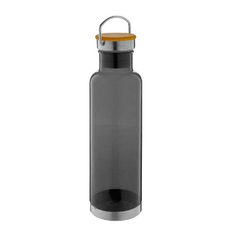 Bouteille en Tritan avec fond en acier inoxydable et couvercle avec insert en bambou. 800 ml. Sans BPA. Ne convient pas aux boissons gazeuses.