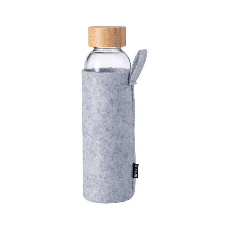 Bouteille en verre avec bouchon en bambou et manchon en feutrine RPET, 500 ml. Ne convient pas aux boissons gazeuses, de couleur gris foncé