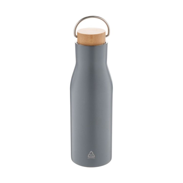 Bouteille isotherme à double paroi en acier inoxydable recyclé avec couvercle en bambou, 500 ml.
