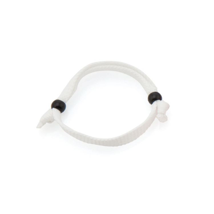Bracelet réglable en polyester et dans une large gamme de couleurs. Avec extrémité à nœud et raccord de réglage.
