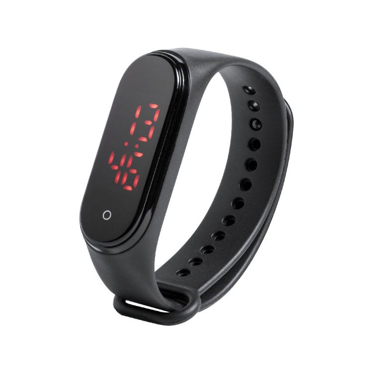Bracelet thermomètre avec écran LED de 0,96" et bracelet en TPU. Avec câble de chargement USB, de couleur noir