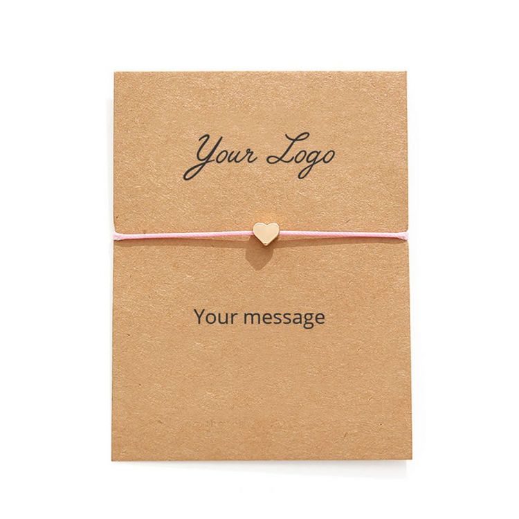 Bracelet coloré en corde fine et breloque en métal (sans nickel). Le bracelet est fourni avec une carte recyclée qui peut être personnalisée d'un côté avec votre propre message de communication.