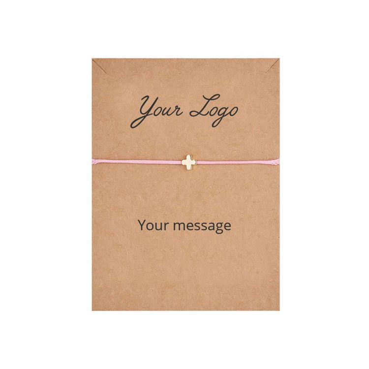 Bracelet coloré en corde fine et breloque en métal (sans nickel). Le bracelet est fourni avec une carte recyclée qui peut être personnalisée d'un côté avec votre propre message de communication.