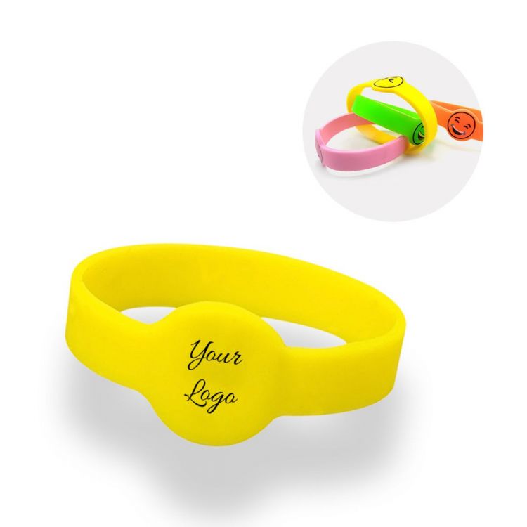 Bracelets en silicone personnalisés avec une forme ronde et votre logo imprimé, jusqu'à 4 couleurs incluses !
