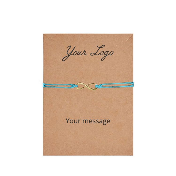 Bracelet coloré en corde fine et breloque en métal (sans nickel). Le bracelet est fourni avec une carte recyclée qui peut être personnalisée d'un côté avec votre propre message de communication.