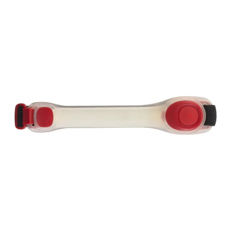 Brassard en silicone muni de 2 LEDS rouges avec fonctions fixe et clignotement, piles incluses.
