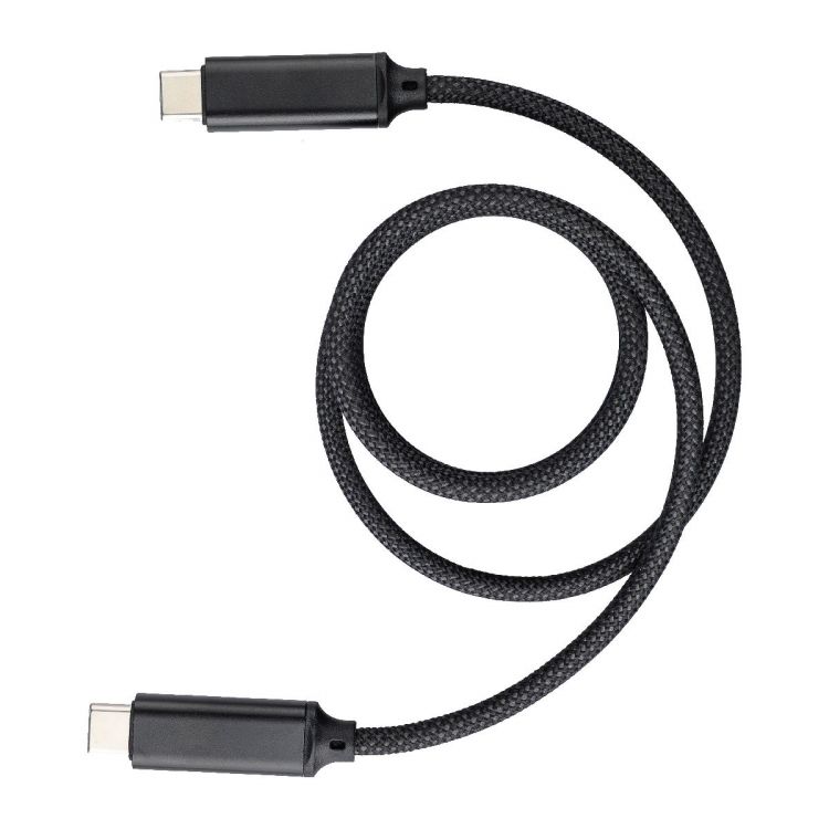 Câble de charge et de transfert de données de 240 Mbps d'une longueur de 1 M en nylon avec prises USB-C vers USB-C d'une puissance de 60 W avec système d'enroulement automatique par aimant dans une boîte cadeau en kraft.