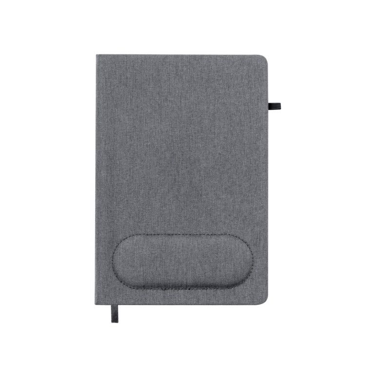 Carnet tapis fabriqué en RPET 300D avec couvercles rigides. Il se distingue par son support original sur la couverture avec une forme ergonomique pour le poignet et peut être utilisé comme tapis de souris. Il comprend des marque-pages et un porte-stylo assorti. Il contient 100 feuilles intérieures lisses et est disponible dans une élégante couleur grise. Avec logo RPET à l’arrière et présenté dans un sac individuel recyclé.Le matériau RPET est fabriqué à partir de plastique recyclé, ce qui favorise la réutilisation des déchets plastiques et contribue à la durabilité de la planète. (couleur gris)