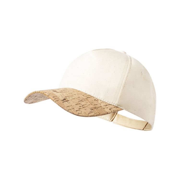 Casquette 5 panneaux de la ligne Nature en coton biologique, avec visière en liège naturel. Avec fermeture velcro réglable. (couleur naturel)