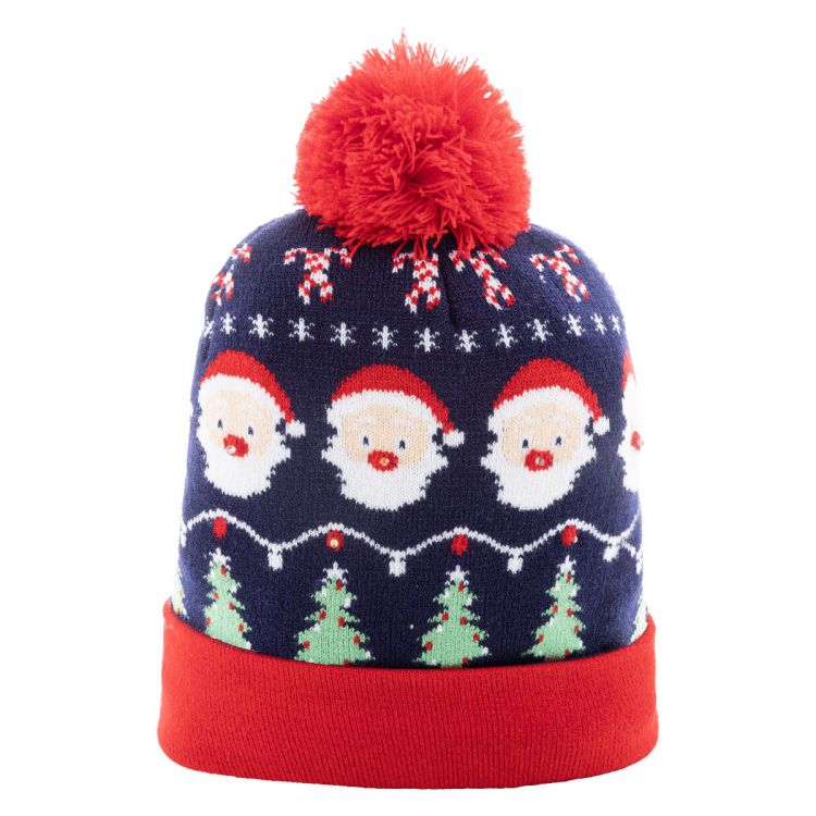 Bonnet de Noël tricoté en acrylique avec 6 LED (3 modes d'éclairage), revers et pompon. Fonctionne avec une pile bouton