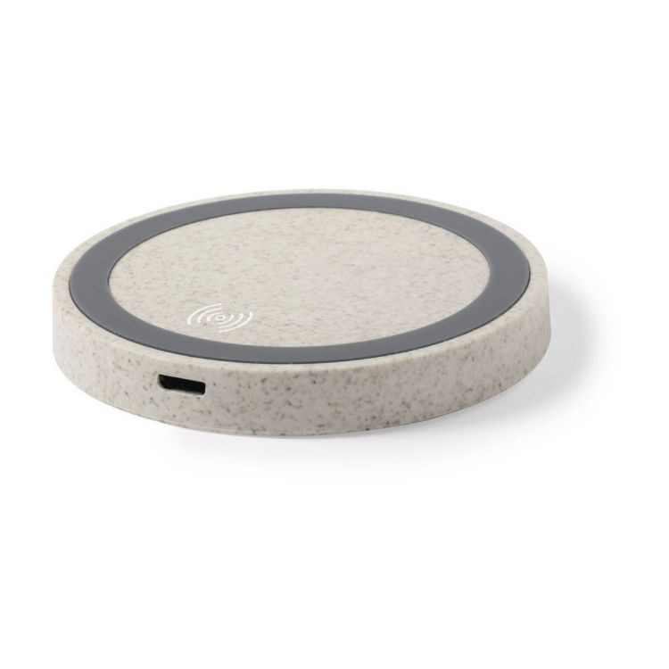 Chargeur à induction de la gamme éco-friendly. En paille de blé, afin de promouvoir l'utilisation de matières premières naturelles et de réduire les émissions polluantes. Chargeur à induction compatibles avec les appareils dotés de Qi technologie (iPhones 8 et plus). Câble inclus. Entrée 5V DC 2A. Sortie 5V DC 1A, 5W. Indicateur d'état de charge. Grande surface de marquage et présentée sous boite cadeau éco design. Câble micro USB blanc inclus. (couleur naturel)