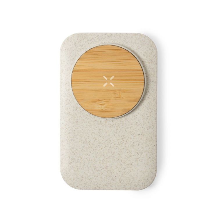 Chargeur à induction de la gamme éco-friendly. En bi-matière bambou et paille de blé, afin de promouvoir l'utilisation de matières premières naturelles et de réduire les émissions polluantes. Chargeur à induction compatibles avec les appareils dotés de Qi technologie (iPhones 8 et plus). Entrée 5V DC 2A. Sortie 5V DC 1A, 5W. Indicateur d'état de charge. Grande surface de marquage et présenté sous boite cadeau éco design. Câble micro USB blanc inclus. (couleur naturel)
