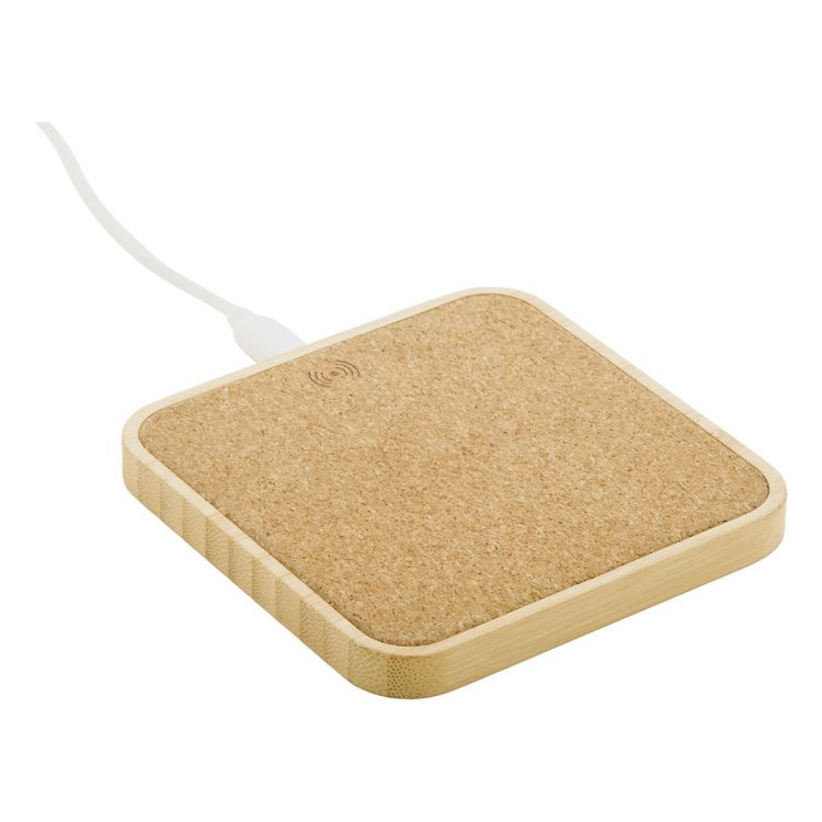 Chargeur rapide sans fil en bambou et liège naturel (15W). Câble de chargeur USB inclus
