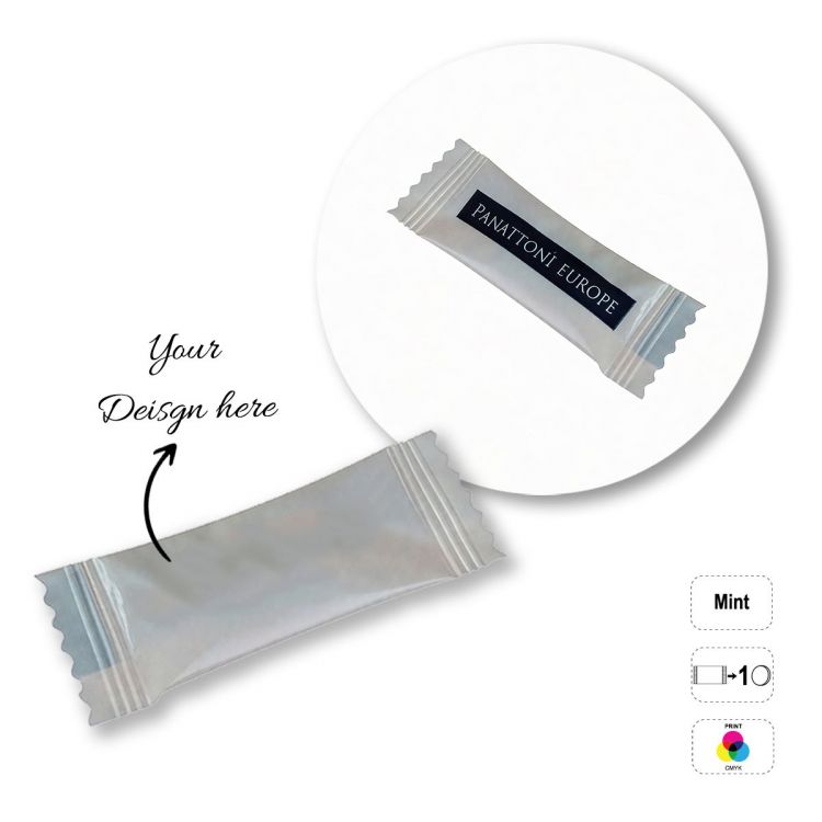 Paquet contenant 1 chewing-gum à la menthe SANS SUCRE. Conditionnement : sac alimentaire entièrement personnalisable avec au choix : sac blanc ou transparent 100% compostable (choix de finition lors de la commande). Durée de conservation minimale - 12 mois.