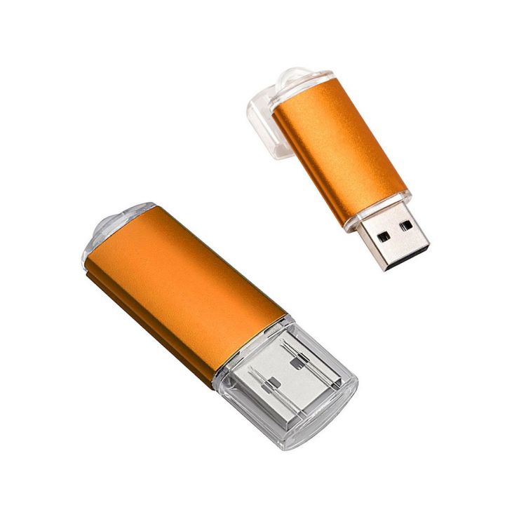Clé USB avec 1, 2, 4, 8, 16, 32 GO de mémoire en plastique et métal, équipée d'un crochet pour les clées à l'extrémité. La coque au design brillant est disponible en différentes couleurs.