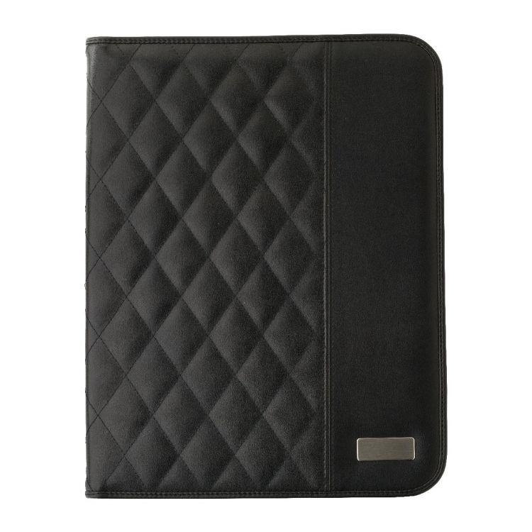 Conférencier A4 en PU muni d'une plaque métallique, livré avec bloc-notes, sans stylo.