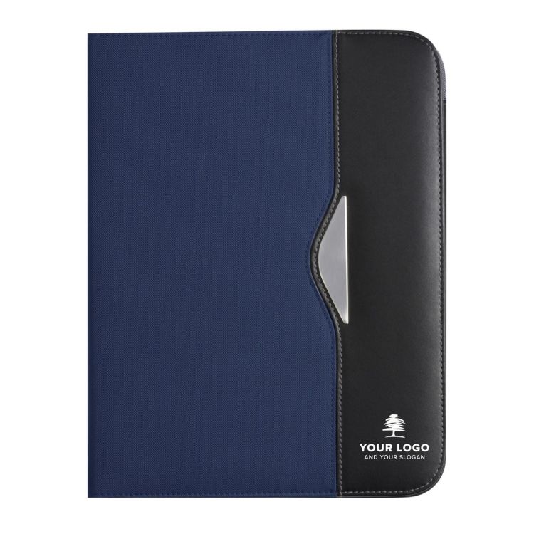 Conférencier A4 en polyester 600D et cuir reconstitué (synderme) avec bloc-notes, sans stylo.
