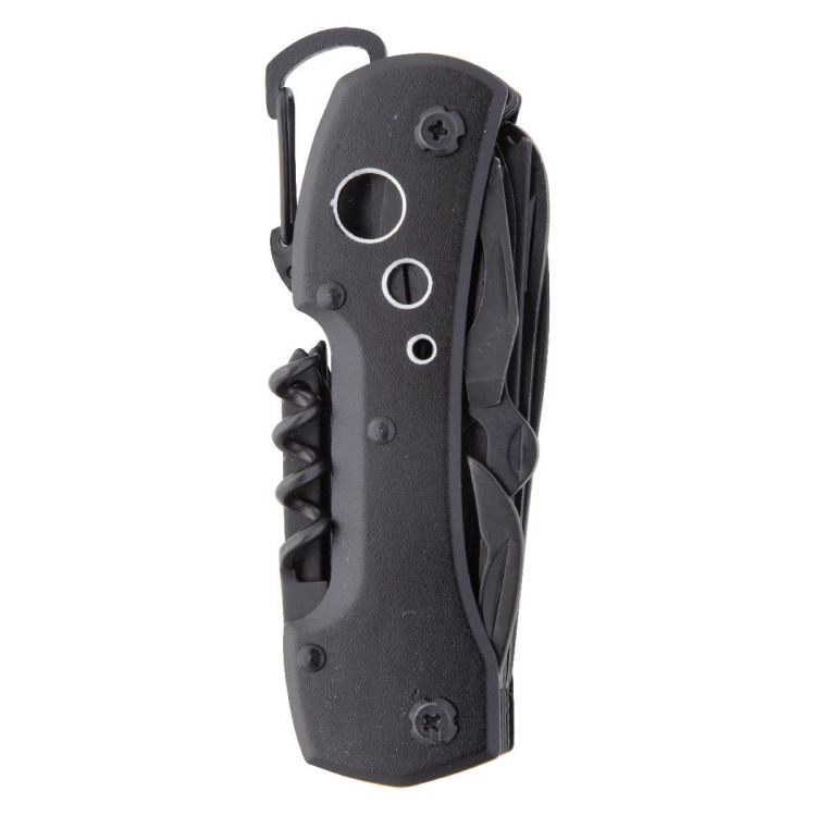 Couteau de poche noir en acier inoxydable avec 13 fonctions, mousqueton et manche en aluminium, de couleur noir