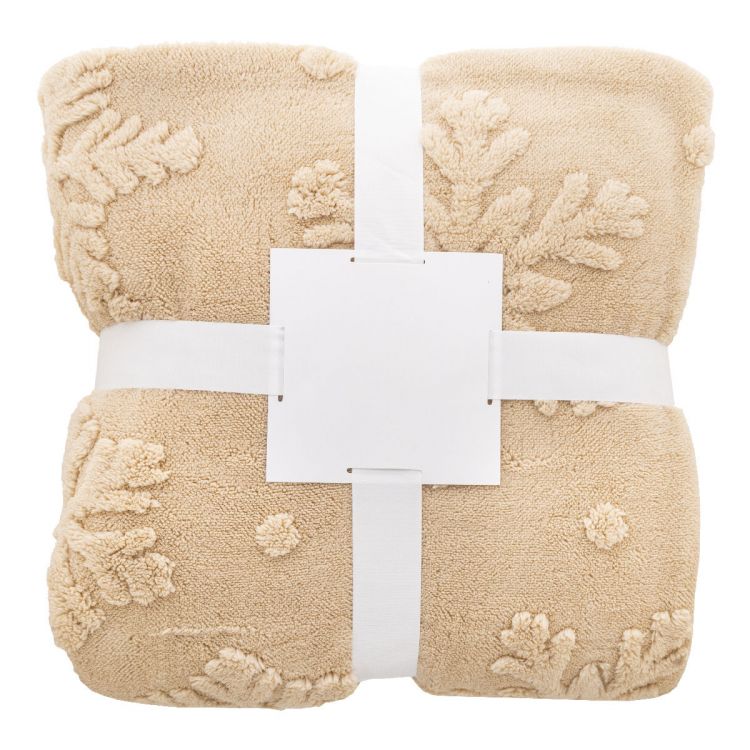 Couverture de Noël luxueuse en RPET doublée avec motif jacquard flocons de neige. En polaire corail RPET 260 g/m² et doublure réversible en polaire sherpa RPET 210 g/m². Entourée d'un ruban et d'une carte en papier imprimable.