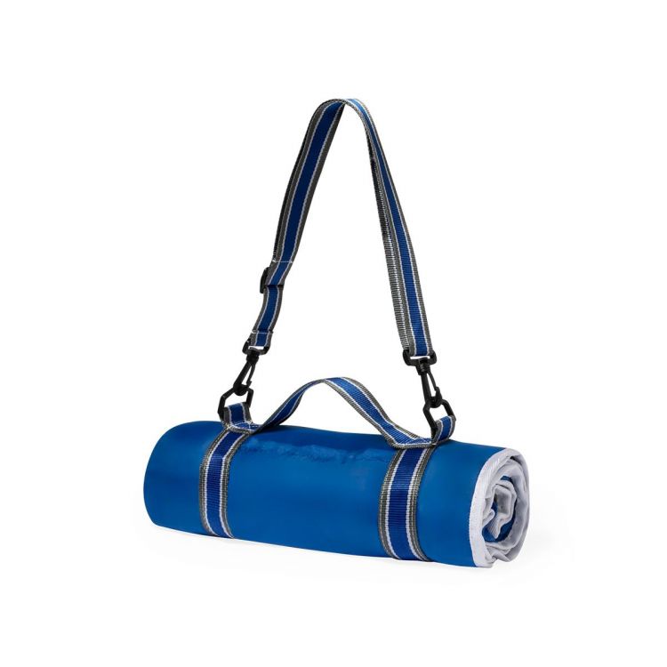 Couverture de pique-nique haut de gamme en polaire douce et chaude de 140g / m2, avec un support en polyester durable de 190g / m2. De taille 120 x 150 cm, et avec bandoulière en nylon durable, avec fermeture velcro réglable et de couleur assortie à la couverture. Se plie facilement et est disponible en plusieurs couleurs. Présentée dans un sac recyclé individuel.
