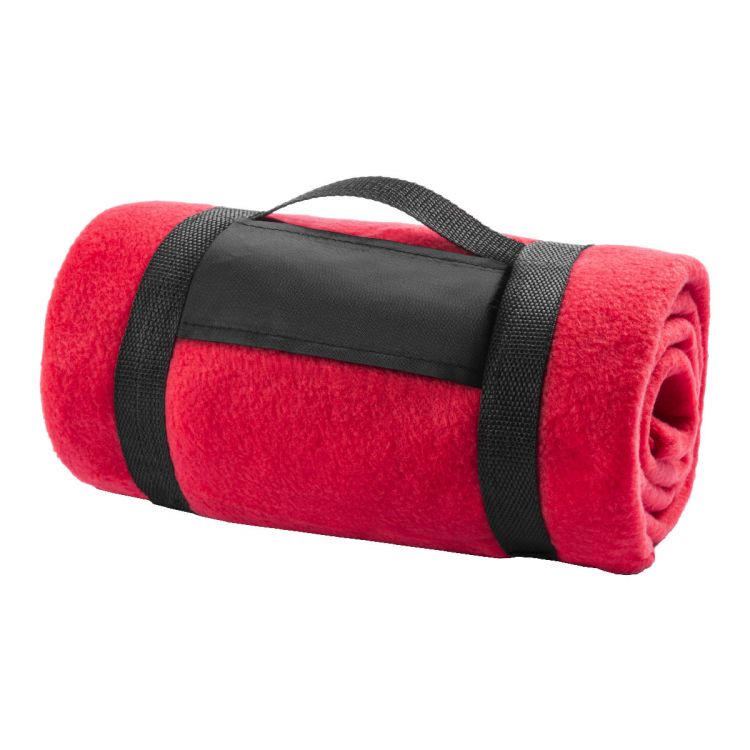 Couverture polaire unie avec sangle en velcro. 100% Polyester. 200 grammes.