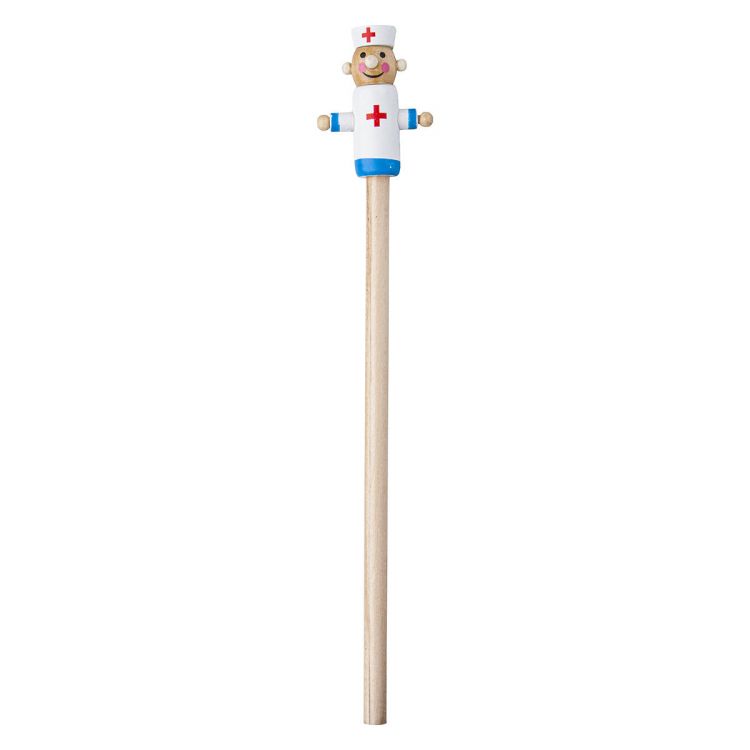 Crayon à papier en bois avec une figurine "docteur" sur le dessus