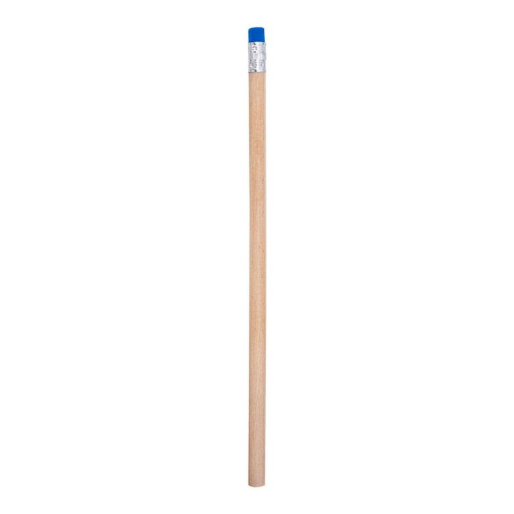 Crayon à papier en bois naturel avec gomme colorée, non taillé.