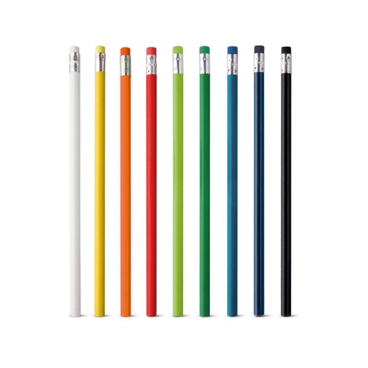 Crayon en bois graphite avec gomme ( non taillé) type HB . Disponible en plusieurs coloris