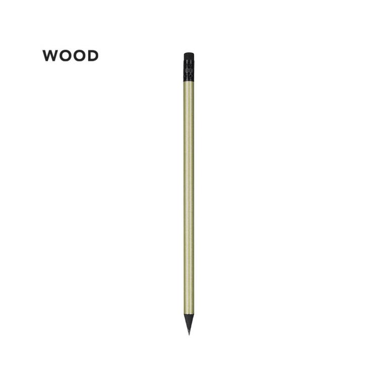 Crayon couleur métallisé avec intérieur noir fabriqué en bois. Inclut une gomme de couleur noire. Avec mine noire et pointe aiguisée.