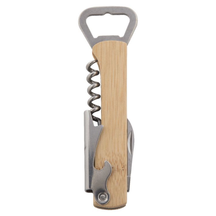 Décapsuleur et tire-bouchon en acier inoxydable avec manche en bambou