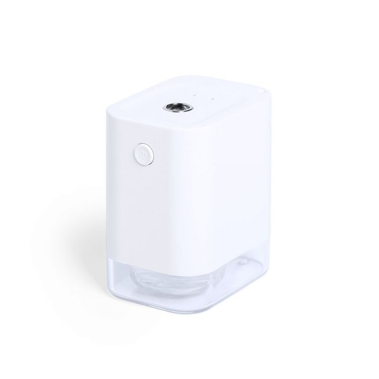 Distributeur automatique d'alcool pour l'hygiène et le nettoyage de la peau, avec détecteur de mouvement infrarouge et indicateur LED. Taille compacte et finition blanche mate discrète, adaptée à la tampographie, avec une contenance de 45 ml facilement rechargeable (alcool non inclus), plus filtre et ressort métallique de remplacement. Batterie lithium-ion 1800 mA, avec capacité de conversion électronique ≥ 90%. Rechargeable via un câble USB de type C de 1 mètre de couleur assortie. Présentation sous boite individuelle. Manuel d'instructions en anglais et en espagnol disponible. (couleur blanche)