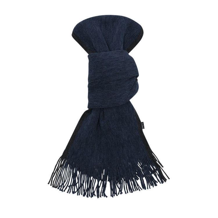 Douce et chaude écharpe confectionnée en polyester RPET chaud. Fabriquée dans des couleurs bicolores élégantes avec des bords de différentes couleurs, finition frangée. Avec Logo RPET sur l'étiquette. Présenté individuellement en boîte noire. Le matériau RPET est fabriqué à partir de plastique recyclé, ce qui encourage la réutilisation des déchets plastiques et contribue à la durabilité de la planète.